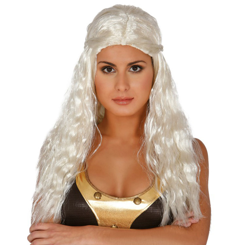 Vågig Vit Peruk omfattar en lång peruk med vågigt vitt hår.