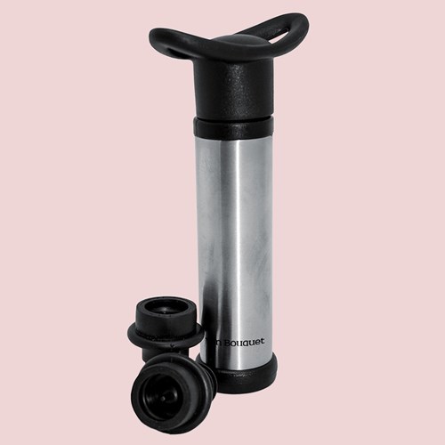 Med denna innovativa pump kan du njuta av en flaska vin över flera dagar utan att förlora dess ursprungliga karaktär! Vakuumpumpen är enkel att använda. Efter att du har öppnat din vinflaska och placerat en av de två medföljande vinkorkarna i flaskhalsen, sätter du bara in vakuumpumpen på korken och trycker ned den. Pumpen skapar ett lufttätt vakuum som förhindrar att syre kommer i kontakt med vinet och minskar därmed oxidationen som kan påverka dess smak. Korkarna är speciellt utformade för att vara extra täta och hålla vinet färskt längre.