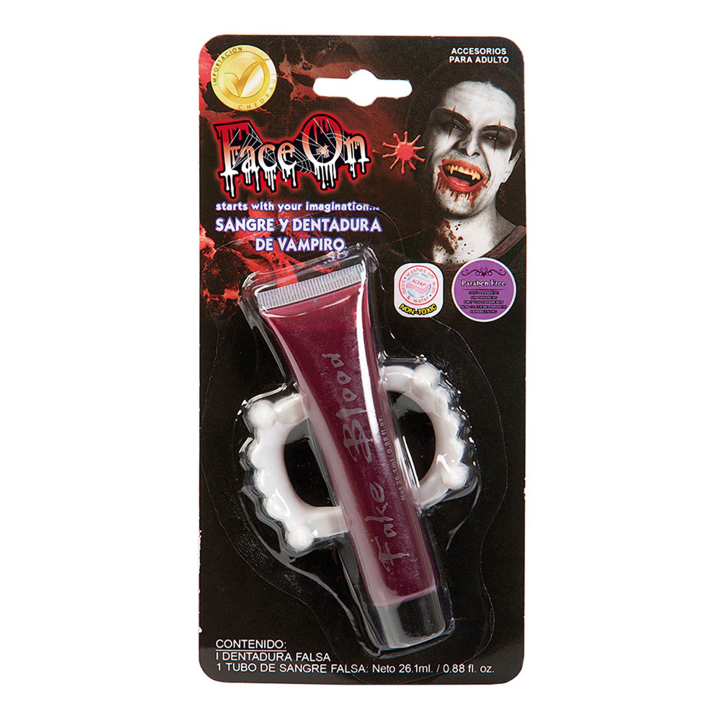 Vampyrtänderna levereras inkl en tub med 26 ml fejkblod.