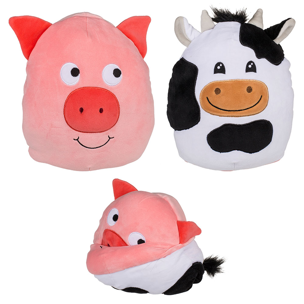 Supergulligt vändbart gosedjur som ser ut som en svart och vit ko på ena sidan och när du vänder på den en rosa gris! Ett gosigt och mjukt dubbelsidigt mjukisdjur, perfekt för alla barn som vill ha en vändbar kompis och mysigt gosedjur.