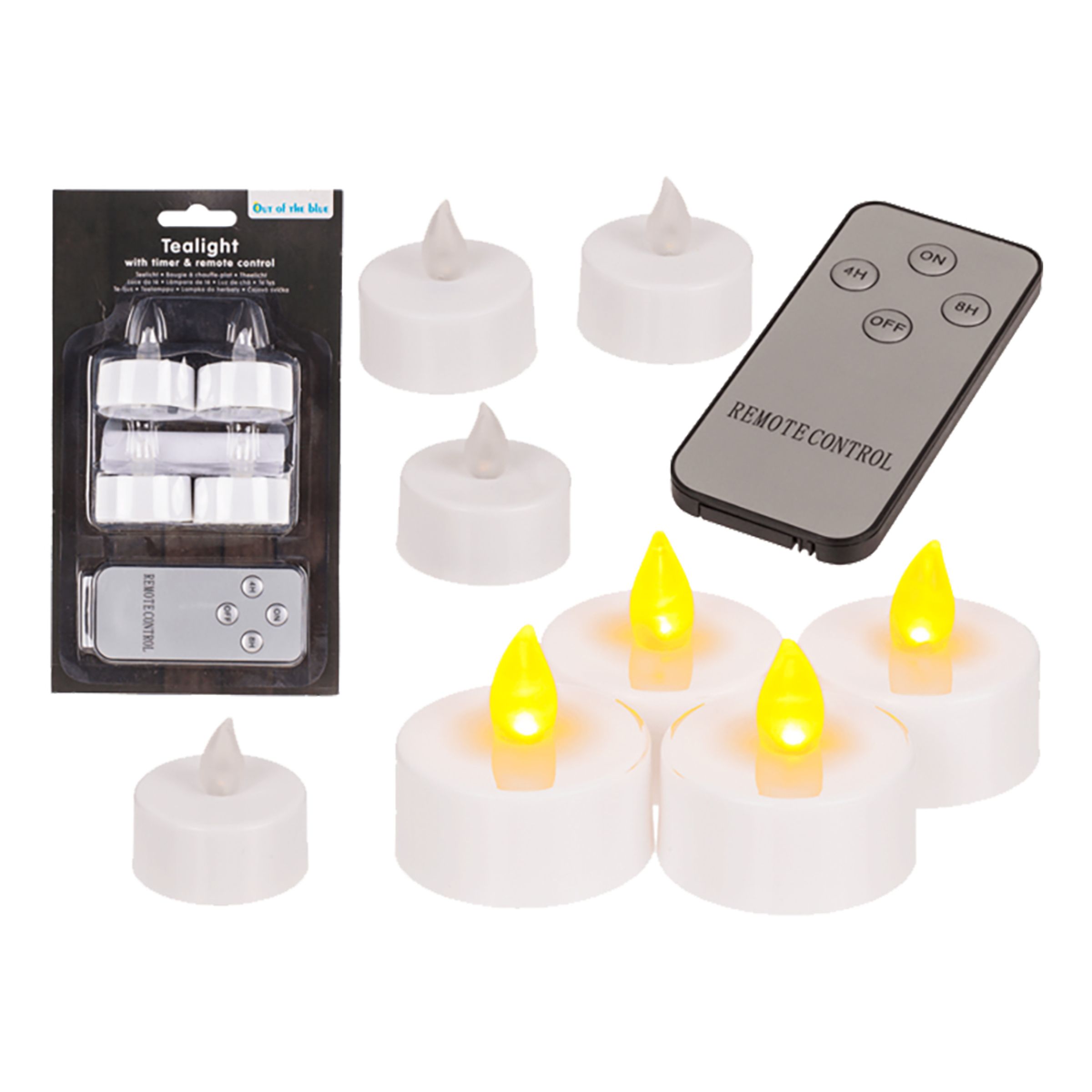 Värmeljus LED med Timer & Fjärrkontroll innehåller 4 stycken LED-ljus i plast som alla mäter 4 cm. Medföljer gör även en fjärrkontroll som styr ljusen (ON/OFF eller timer på 4h eller 8h).