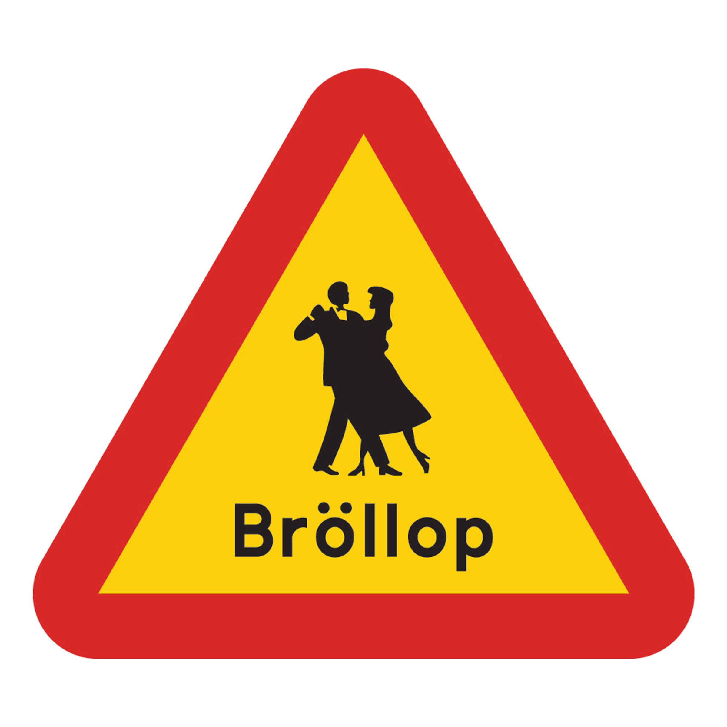 Varningsskylt Bröllop är en riktigt rolig varningsskylt i form av en klassisk varningstriangel med motiv av ett dansande bröllopspar med texten: "Bröllop". Skylten blir en rolig detalj till bröllopet du som best man eller tärna kan fixa. Skylten är tillverkad i 100% forexskiva och tål att vara utomhus.