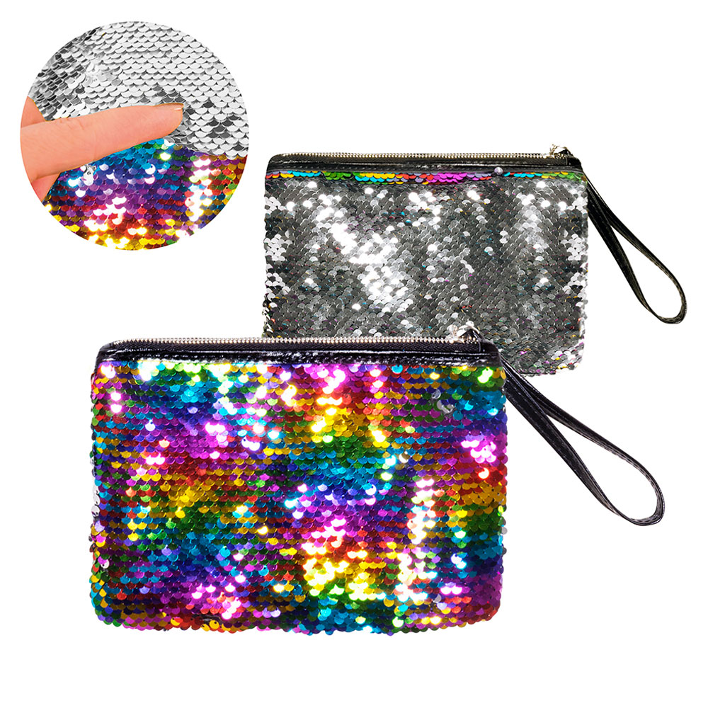 Väska med Vändbara Paljetter består av en skimrande paljettväska med dragkedja och en liten ögla. Väskan har vändbara paljetter som kan ändras från silver till regnbågsfärger.