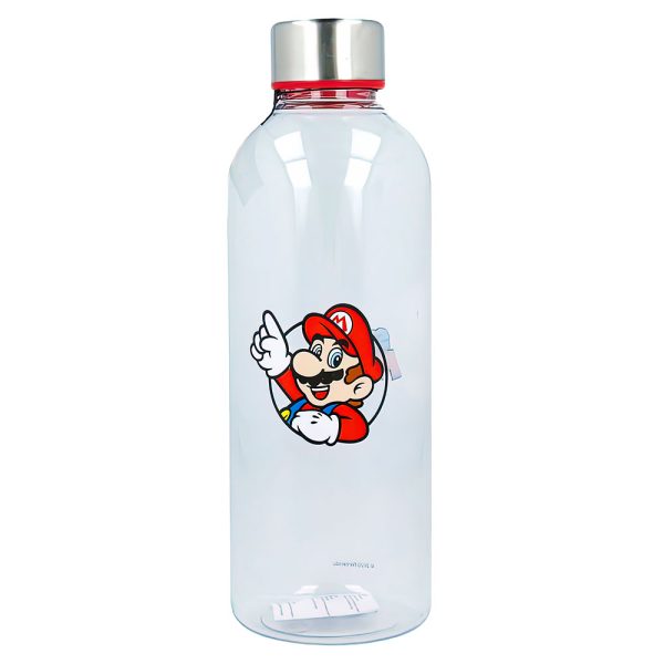 En snygg och stilren genomskinlig vatten-flaska med klassiskt Super Mario motiv för törstiga barn! Denna drick-flaska passar utmärkt att ha med sig överallt, då den är droppfri med praktiskt metallock och gjord i BPA-fri plast, vilket gör den till en vatten-flaska perfekt för äventyr och aktiviteter för ditt barn! Glöm inte att fylla med vatten innan äventyret börjar!