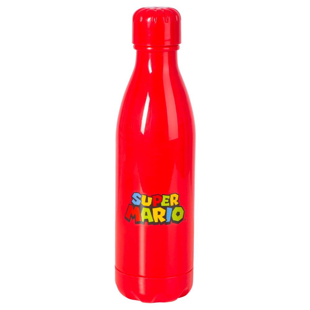 Vattenflaska Super Mario omfattar en röd flaska med Marios "M" märke och Super Mario loggan. Flaskan rymmer 660 ml och har en skruvkork.