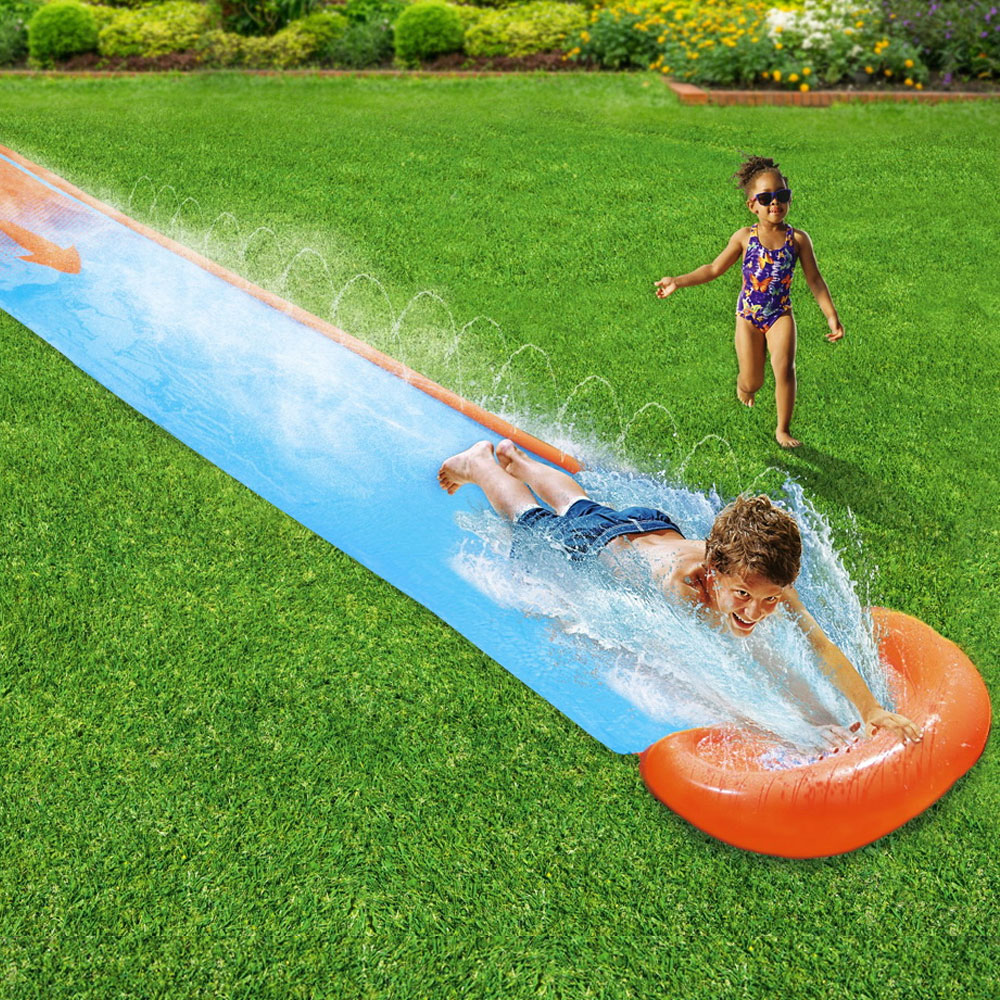 Få ett oförglömligt sommarlov med den här roliga vattenglidbanan i trädgården! En helkul vattenrutschbana som du bara behöver koppla ihop med din trädgårdsslang för att bli redo för olika vattenlekar, med den här vattenbanan kan ni exempelvis tävla om vem som kan glida snabbast längst banan eller kanske vem som kan skapa störst plask i slutet. En riktigt rolig vattenglidbana som garanterat kommer att bidra till timtals av skojig vattenlek.