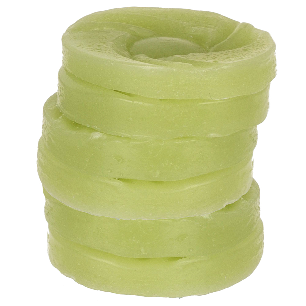 Vaxkakor Sicilian Bergamot består av kakor med smält vax för aromalampa som doftar bergamott. En vaxkaka är ungefär 0,5 centimeter hög och har en diameter på 3,5 centimeter. Säljs i 6-pack.