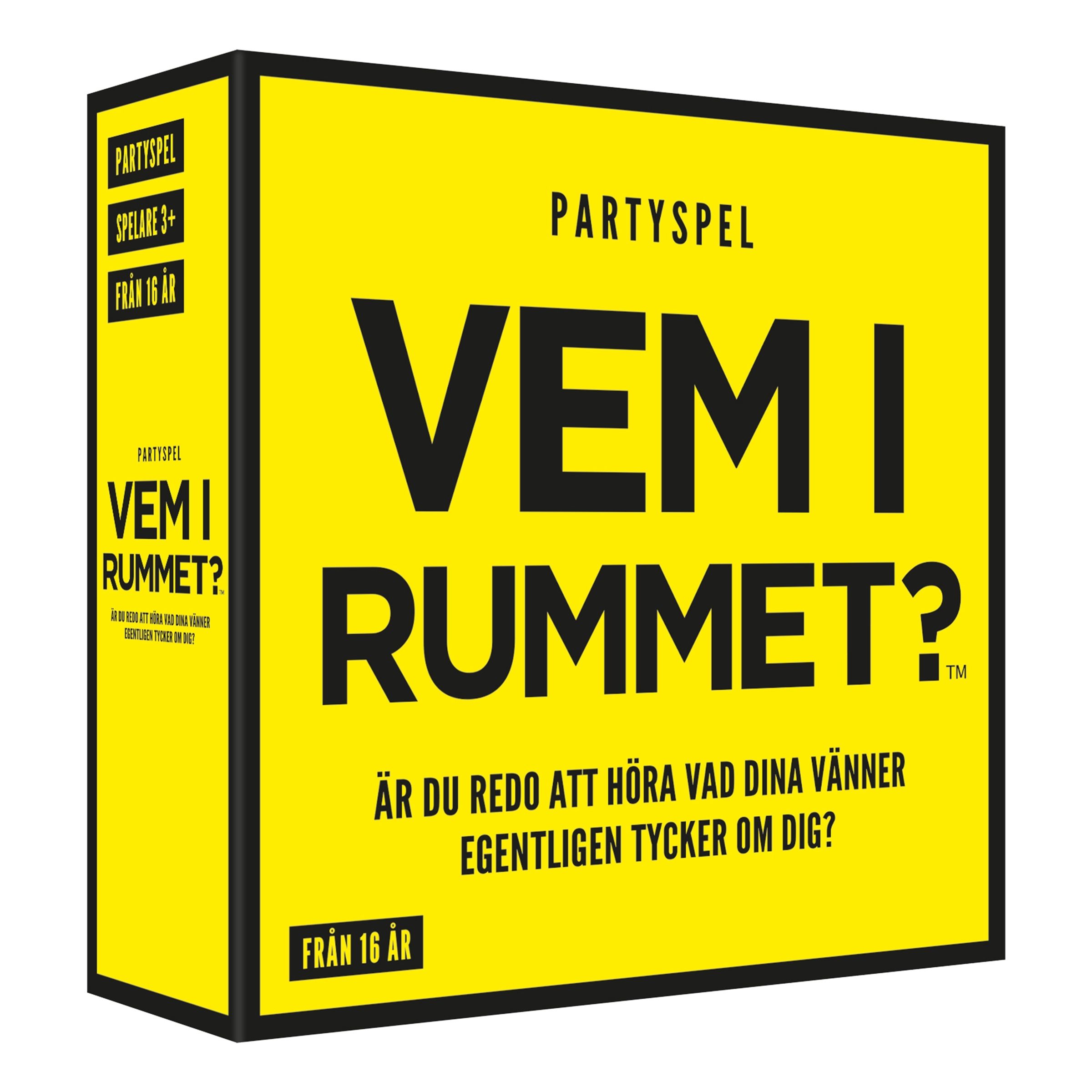 Spelet innehåller mer än 300 galna, pinsamma och personliga frågor som alla inleds med frasen Vem i rummet..? Dra ett kort, läs frågan högt inför alla, låt alla fundera ett par sekunder, räkna till tre och låt sedan alla runt bordet peka på just den person dom tycker passar bäst som svar på frågan. Var beredd på massor av överraskningar, pinsamheter och roliga diskussioner! Vem i rummet..? är det perfekta spelet för varje förfest eller middag! Levereras i en snygg förpackning som mäter 14 x 14 cm.