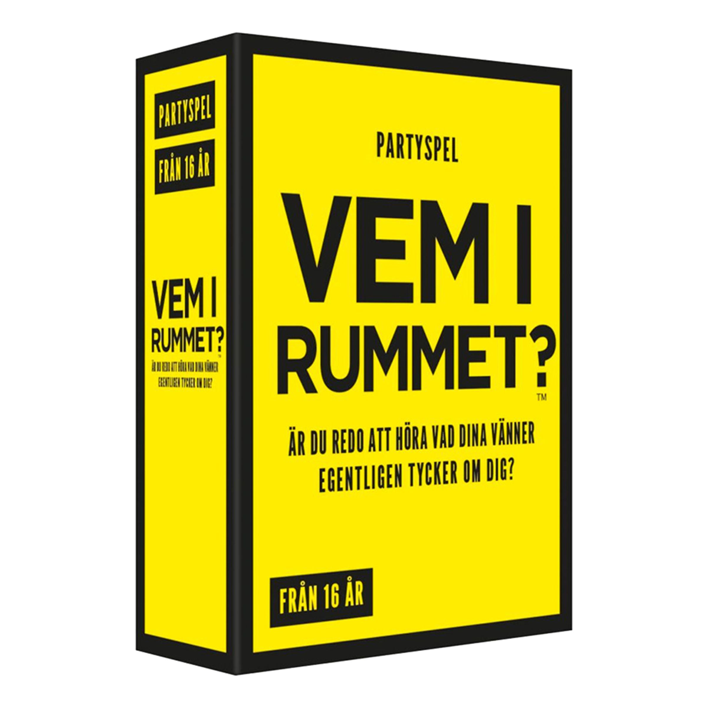 Spelet innehåller mer än 165 galna, pinsamma och personliga frågor som alla inleds med frasen Vem i rummet..? Dra ett kort, läs frågan högt inför alla, låt alla fundera ett par sekunder, räkna till tre och låt sedan alla runt bordet peka på just den person dom tycker passar bäst som svar på frågan. Var beredd på massor av överraskningar, pinsamheter och roliga diskussioner! Vem i rummet..? är det perfekta spelet för varje förfest eller middag!
