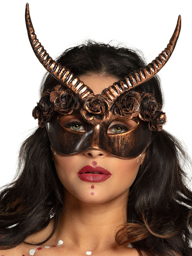 Bli festens hemliga gäst med en venetiansk mask som döljer ditt sanna jag, vem vet är du festens hedergäst eller har du kommit oinbjuden? Med denna kopparfärgade maskeradmask med häftiga horn kommer du garanterat att få till en mystisk och en aning hemlighetsfull look till din utklädnad.