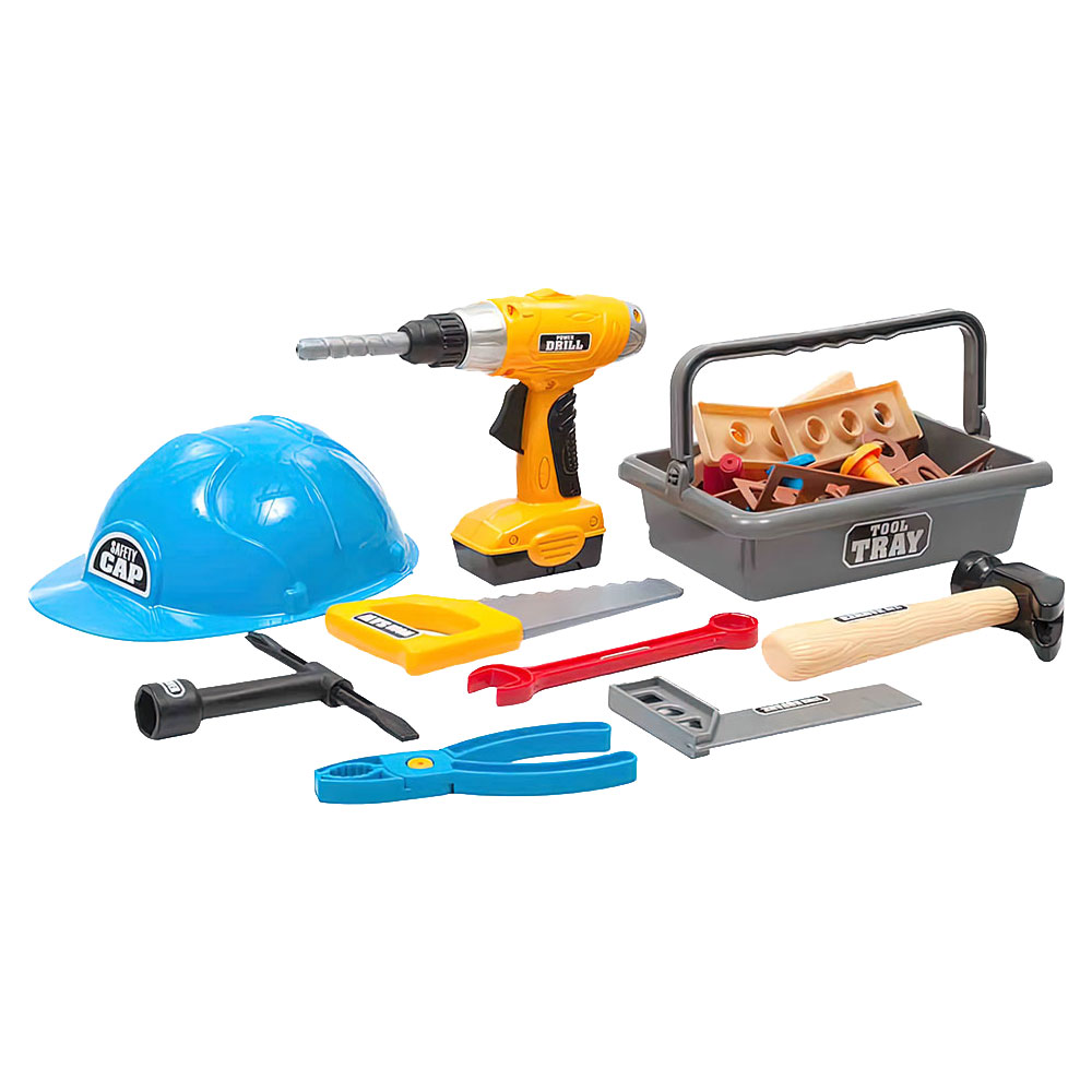 Gör dig redo för jobbet på byggarbetsplatsen med detta roliga leksaksverktyg set! Ett komplett set med en verktygslåda, en hjälm och flera olika verktyg som blir en helt perfekt leksak för alla barn som drömmer om att bli snickare. Spika, såga, skruva och måtta med dessa roliga leksaker och dröm dig bort i en riktigt skojig snickarlek!