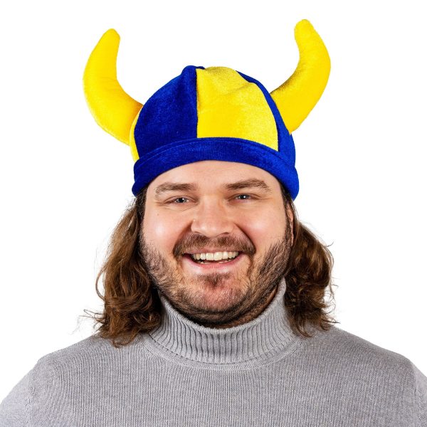 Vikingahjälm Blå/Gul är en tuff huvudbonad som kommer medföra respekt vart du än går! Passar lika bra på studentfirandet som till fotbollsmatchen!