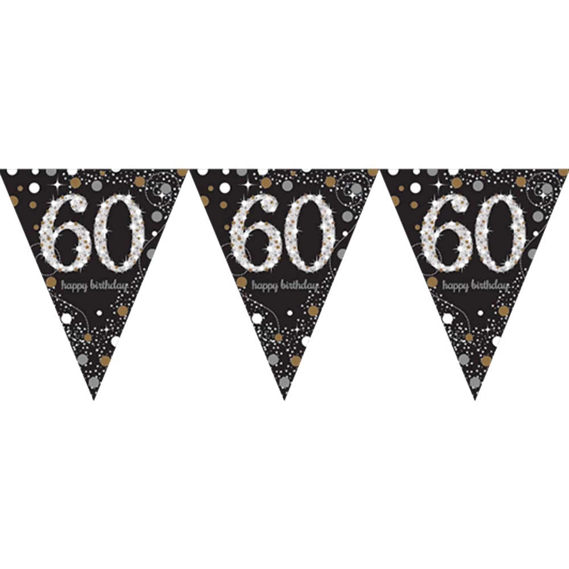 Vimpelgirlang 60 Guld/Silver Glitter består av en girlang fylld av vimplar med texten "60 Happy birthday" på. Perfekt till födelsedagen!