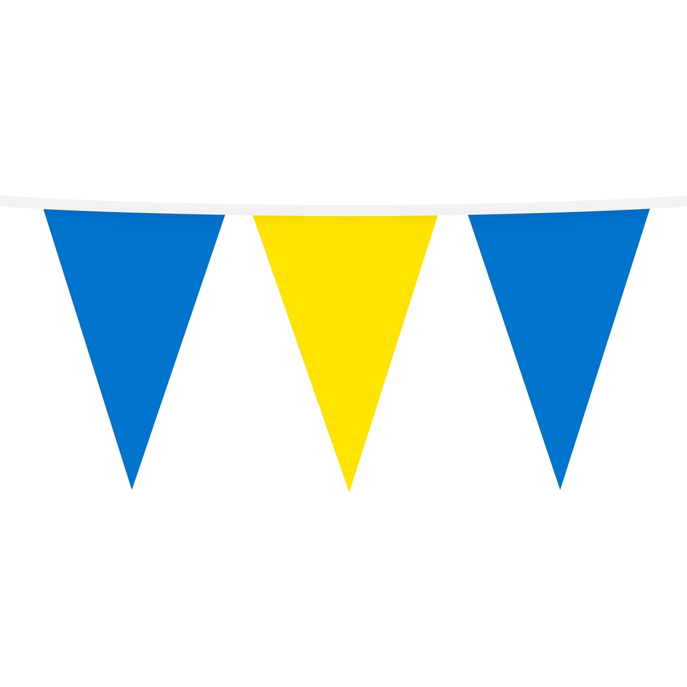Vimpelgirlang Blå/Gul innehar 12 stycken vimplar som alla mäter 15 x 22 cm. Girlangen hängs enkelt upp i taket för att smycka festen!