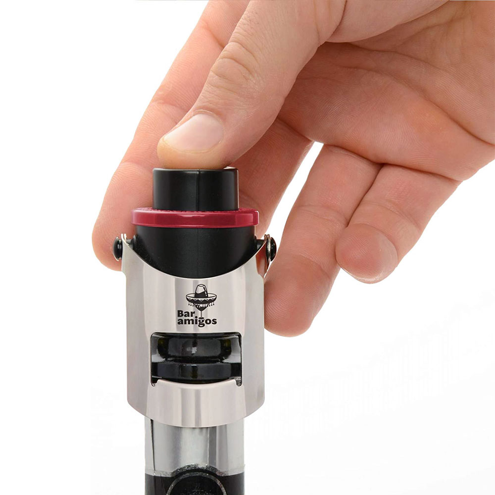 Med denna snygga vakuumkork till vin och champagne håller sig innehållet i flaskan fräscht och kolsyrat. En vinförslutare med vakuum har en given plats i väskan tillsammans med andra bra-att-ha-grejer när det blir improviserad fest. Känner du någon som älskar mousserat vin och champagne så är givetvis en vinkork vakuum förslutare en perfekt present till denne!