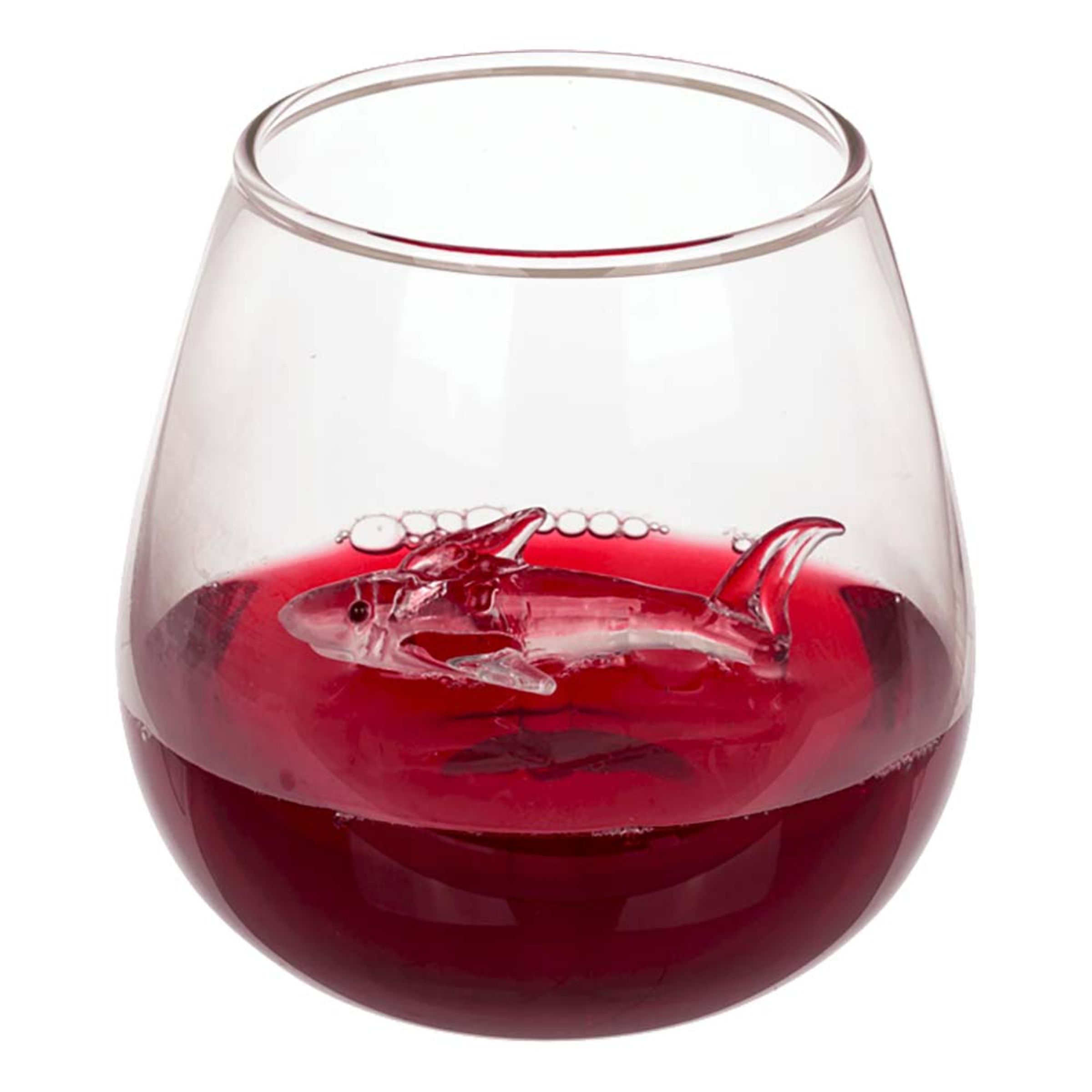 Ursäkta kyparn, det simmar runt en haj i mitt Château Latour! Det här glaset är inte bara härligt att hålla i, när du tagit några klunkar uppenbarar sig en hemlighet också. En ståtlig haj plaskar runt i drycken – och du vågar fortsätta klunka?