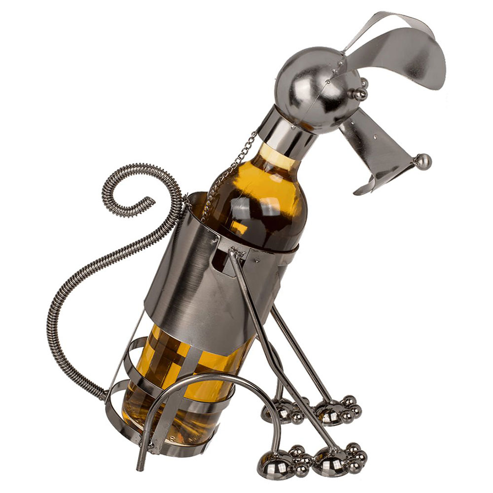 Fin och annorlunda vin-hållare i metall som ser ut som en hund, perfekt för alla som gillar hundar och vill ha ett roligt vin-ställ. Denna hund och flaskhållare blir en rolig detalj på middagen när det ska serveras vin, en kul vinflaskhållare i snygg metall som passar utmärkt till festligheter.