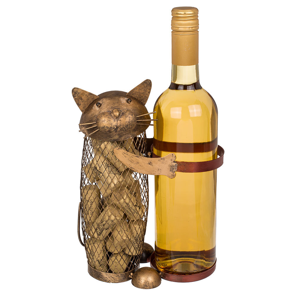 Gillar du vin och katter är denna flaskhållare i metall perfekt, en fin och praktisk vinflaskhållare där du också kan lägga använda vinkorkar. Ta fram detta vin-ställ på middag och fest, denna vin-hållare i snyggt guld och röd metall blir garanterat uppskattat av gästerna.