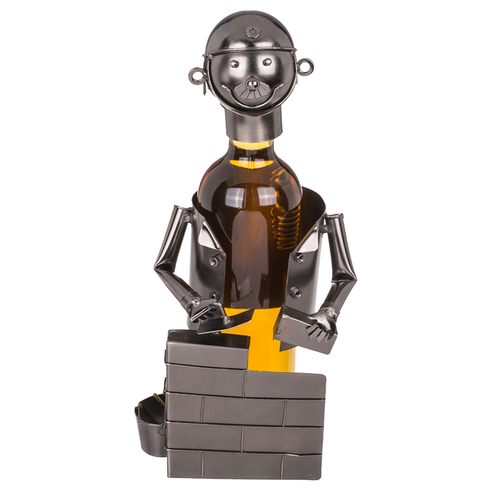 Vin kan förvaras och visas upp på ett annorlunda och roligt vis med detta vinställ av metall som föreställer en murare. En flaskhållare i mörk grå färg passar in i de allra flesta hem och utgör därmed en alldeles utmärkt present eller julklapp till den som behöver en dekorativ vinhållare.