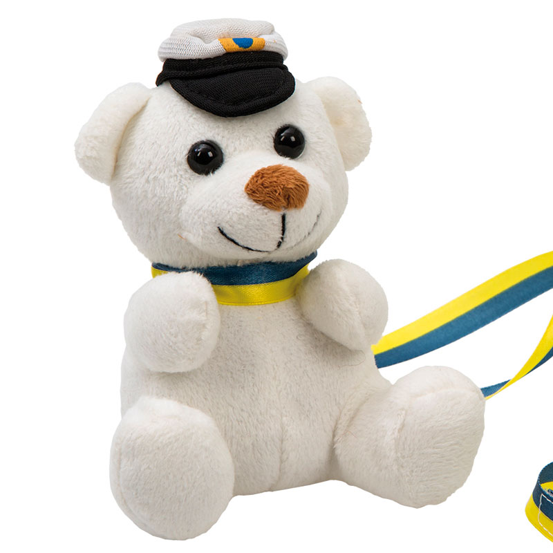 Vit Studentnalle omfattar en nallebjörn i vit nyans bärande på en studentmössa. Studentnallen kan hängas runt halsen med det medföljande blå/gula nylonbandet.