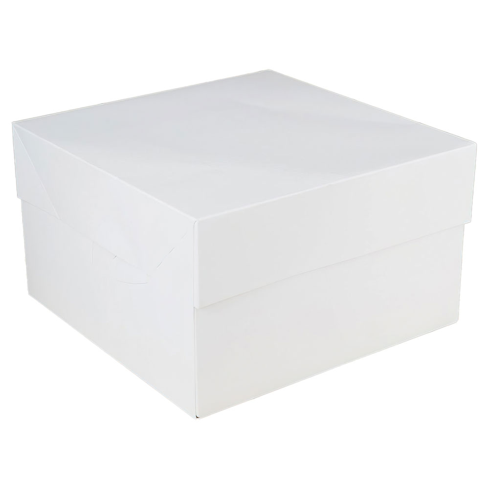 Vit Tårtkartong omfattar 1st vit tårtkartong av papp som är ca 35,5 cm lång, 35,5 cm bred och 15,2 cm hög.