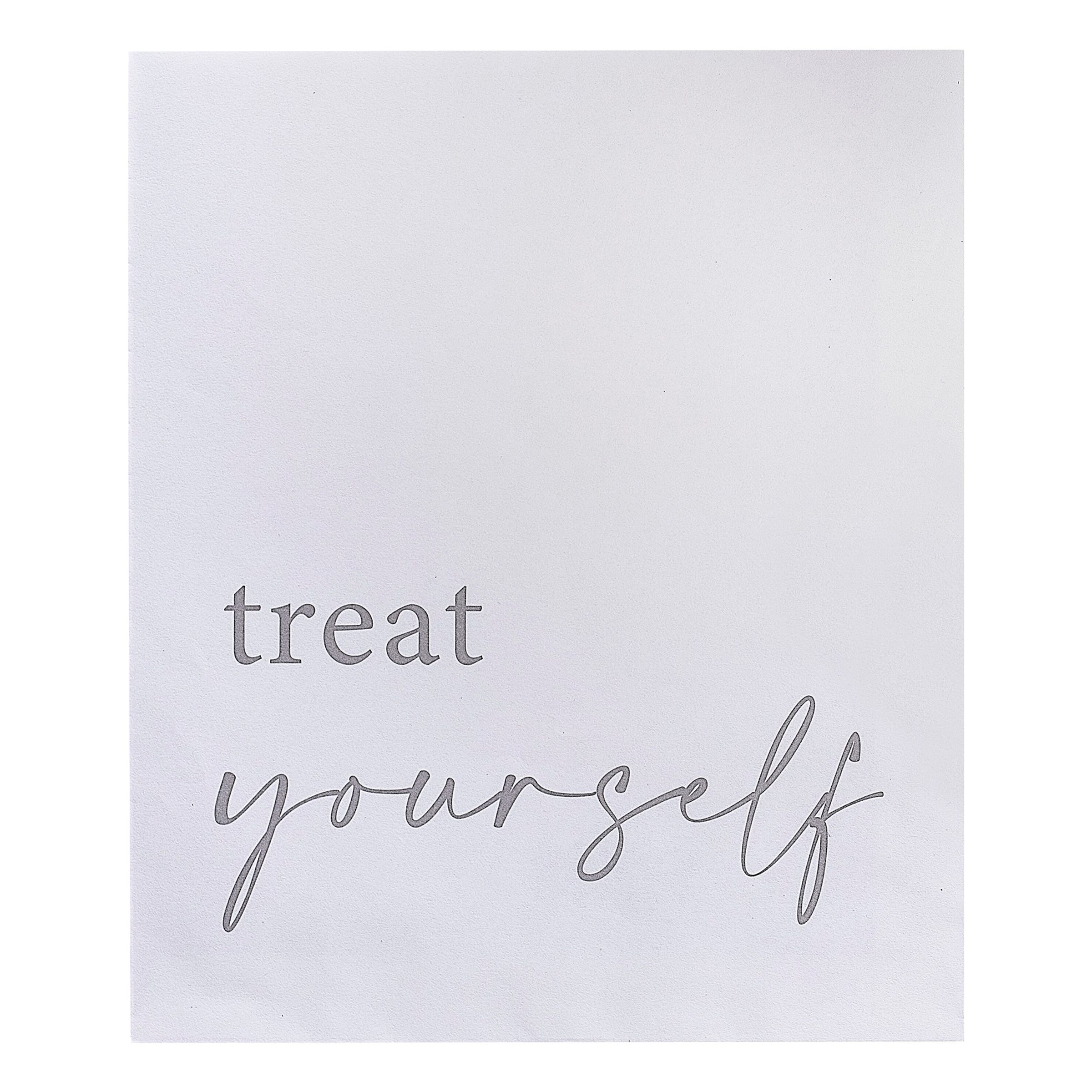 Vita Godispåsar Treat Yourself inkluderar totalt tjugo stycken vita papperspåsar som kommer med texten "Treat Yourself" skrivet i silver/grått. Godispåsarna passar utmärkt att använda till exempelvis bröllopsfesten tillsammans andra dekorationer ur samma kollektion för ett modernt och elegant tema.