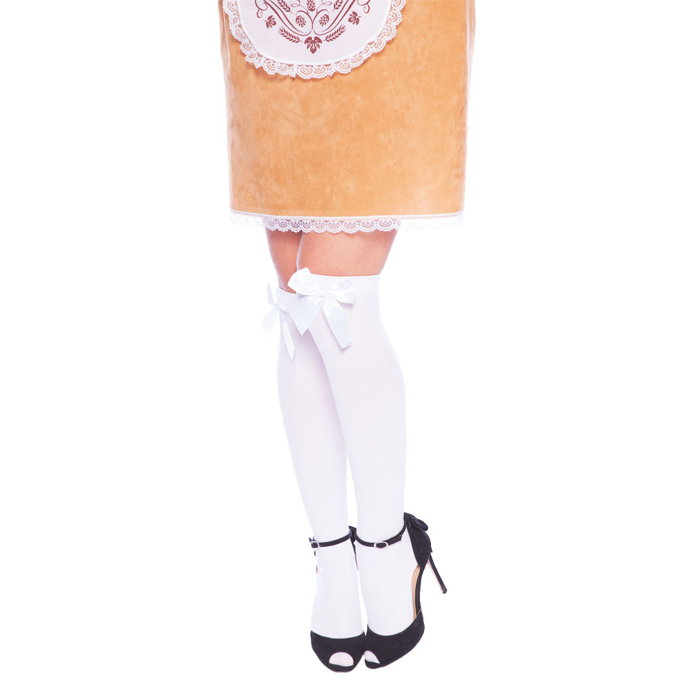 Ölen är upphälld och kringlorna är framdukade, nu är det dags för Oktoberfest! Se till att din Oktoberfest klädsel är helt komplett med dessa fina strumpor. Vita Oktoberfest knästrumpor med söt rosett som blir ett riktigt stilfullt tillbehör till din Oktoberfest utklädnad. Toppenbra för dig som söker fina Oktoberfest accessoarer till din dirndl klänning.