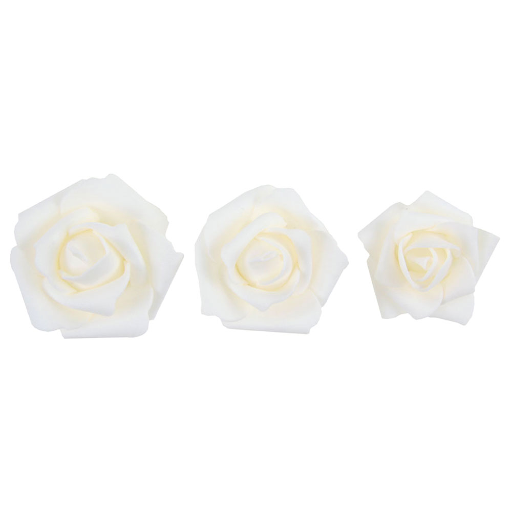 Vita Konstrosor omfattar 9 stycken vita konstrosor av skummaterial. Rosorna kommer i tre olika storlekar och mäter ca 5, 5,5 och 7 cm i diameter.