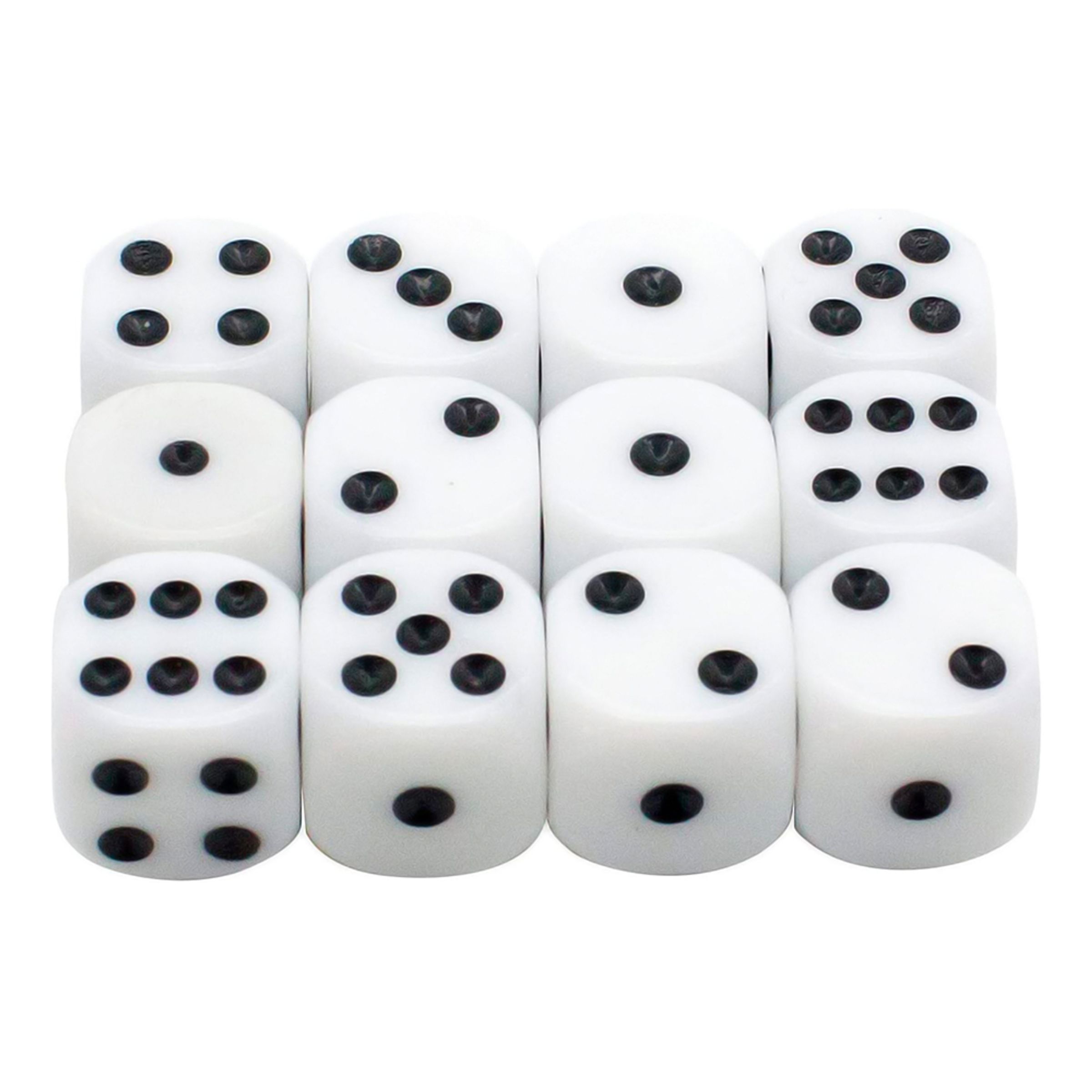 Vita Speltärningar är ett set med tolv stycken klassiska tärningar i vit färg med svarta prickar. Som extratärningar eller om du råkat slarva bort speltärningarna till ditt favoritbrädspel.