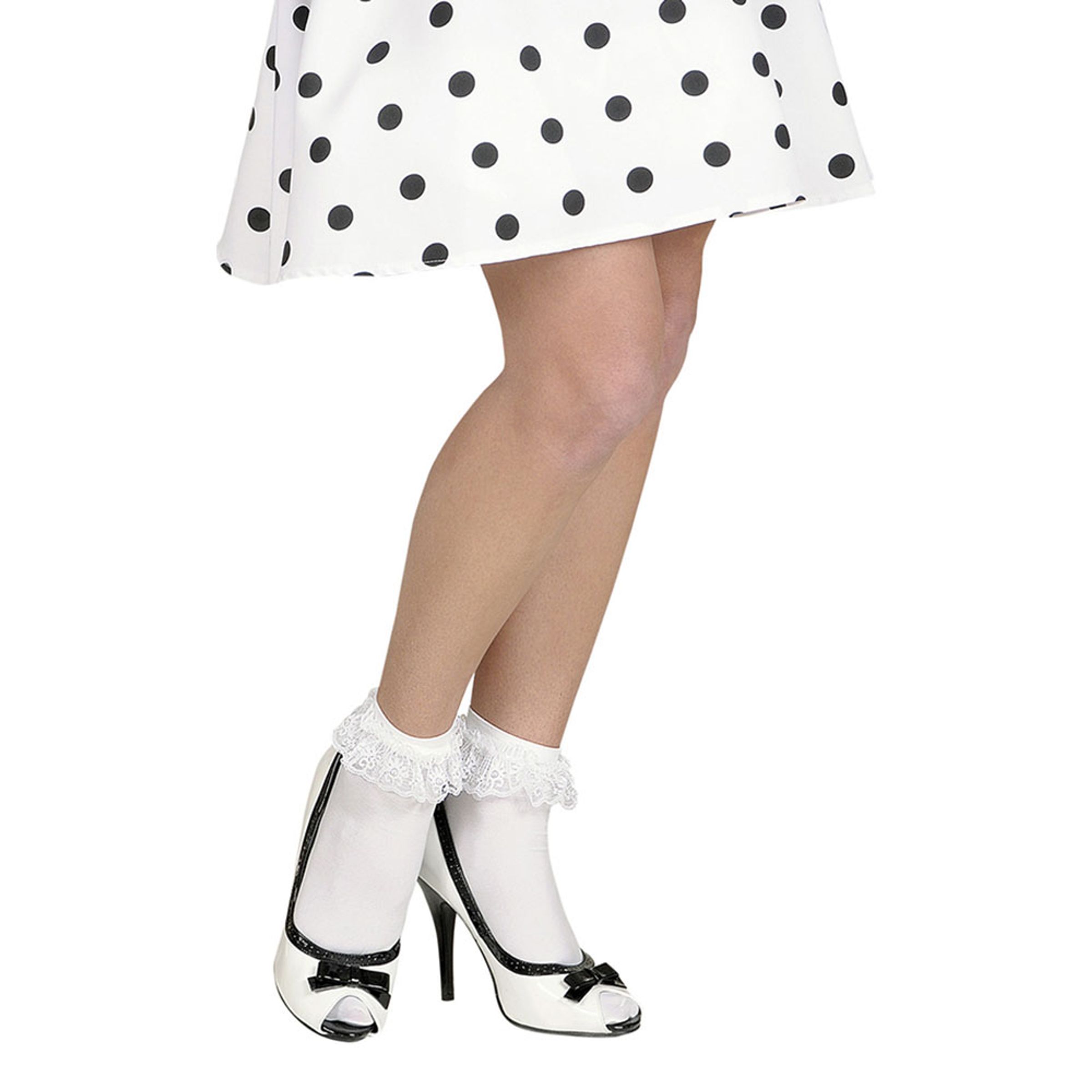 Dessa supersöta strumpor med en fin kant av spets passar perfekt till en klänning eller en kjol. Tankarna går genast till 50-talet och filmer som Grease, men vi tycker att de här strumporna är så fina så det passar toppen på vilken härlig sommarfest som helst!