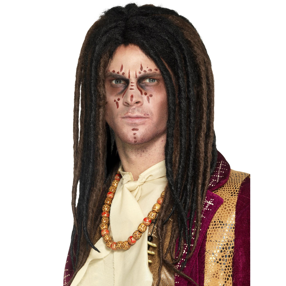 En härlig dreads peruk i svart och brunt, som har tonvis med möjligheter till olika maskerad utklädnader. Skapa en cool voodoo outfit eller varför inte en häftig pirat utklädnad med denna dreadlocks peruk.