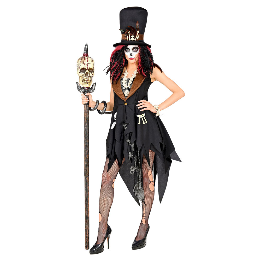 Häftig voodoo kostym för alla voodoo-tjejer som söker en snygg klänning till maskerad och halloween. Med denna klänning och matchande hatt dressar du enkelt upp i häftig voodoo-stil. Ett toppenbra val för dig som vill sticka ut lite från mängden med samtidigt passa in på firandet.