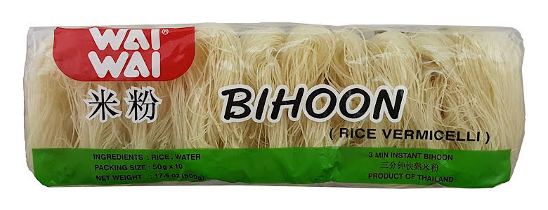 Tunna (0.6mm) Thailändska risnudlar. En förpackning innehåller 10st 50g portioner.