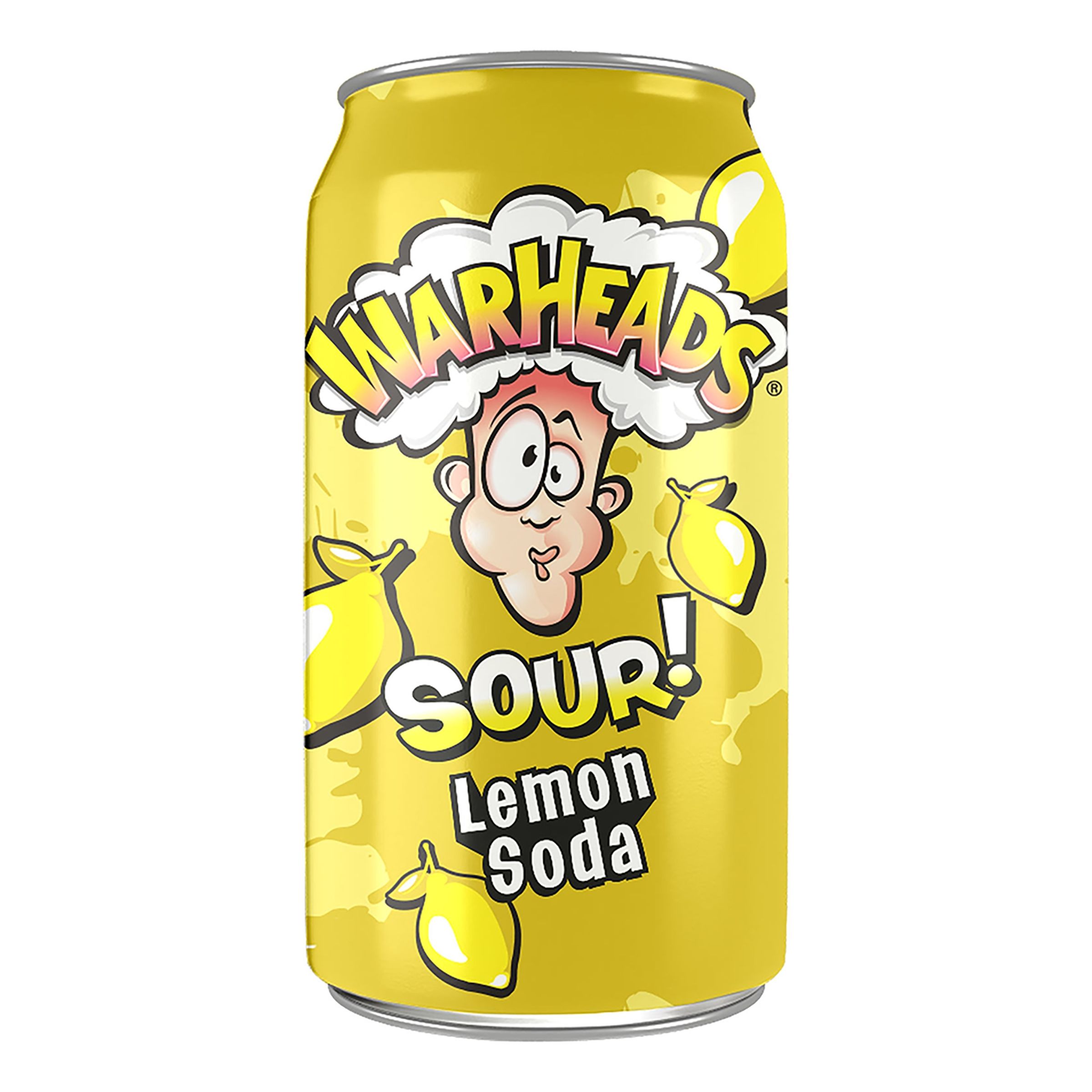 Warheads Sour Soda Lemon är en sur kolsyrad läsk med smak av citron från tillverkarna av det supersura godiset Warheads.