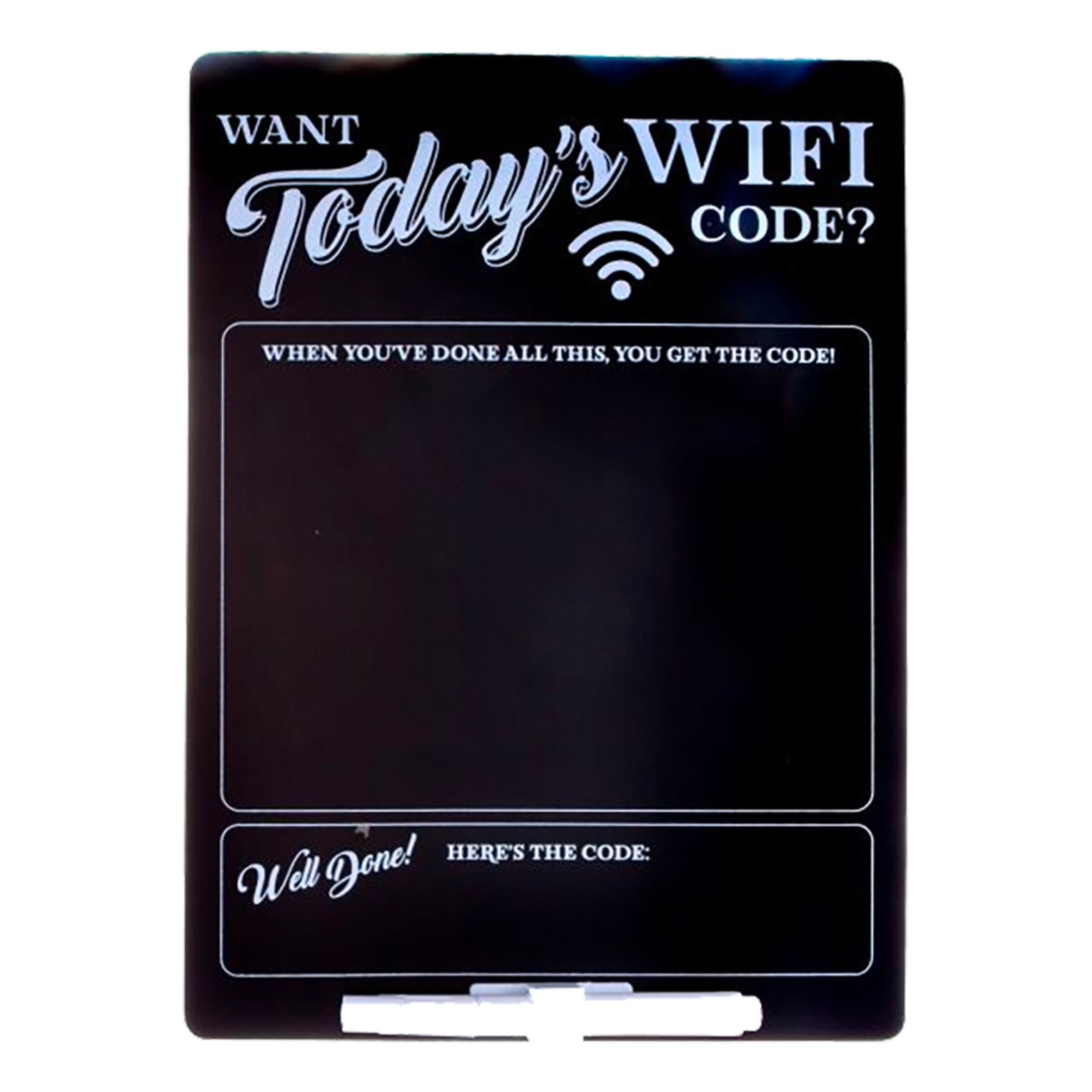 Wifi Code Tavla är en rolig krittavla som kommer med texten "Want todays WIFI code?", samt en ruta som säger "Here's the code". Skriv helt enkelt vilka sysslor som behöver göras i första rutan (krita medföljer), och vänta tills de är utförda innan du slutligen belönar barnen med Wi-Fi-lösenordet. Ett smart och kul sätt att reglera skärmtid!