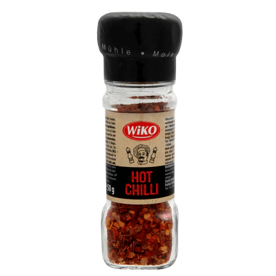 Kryddkvarn fylld med heta chiliflakes från Wiko. Perfekt för dig som vill tillsätta lite extra hetta till dina maträtter, oavsett om det gäller grillat, pastarätter eller grytor. Enkel att använda och ger en intensiv och smakfull kick till dina favoriträtter.