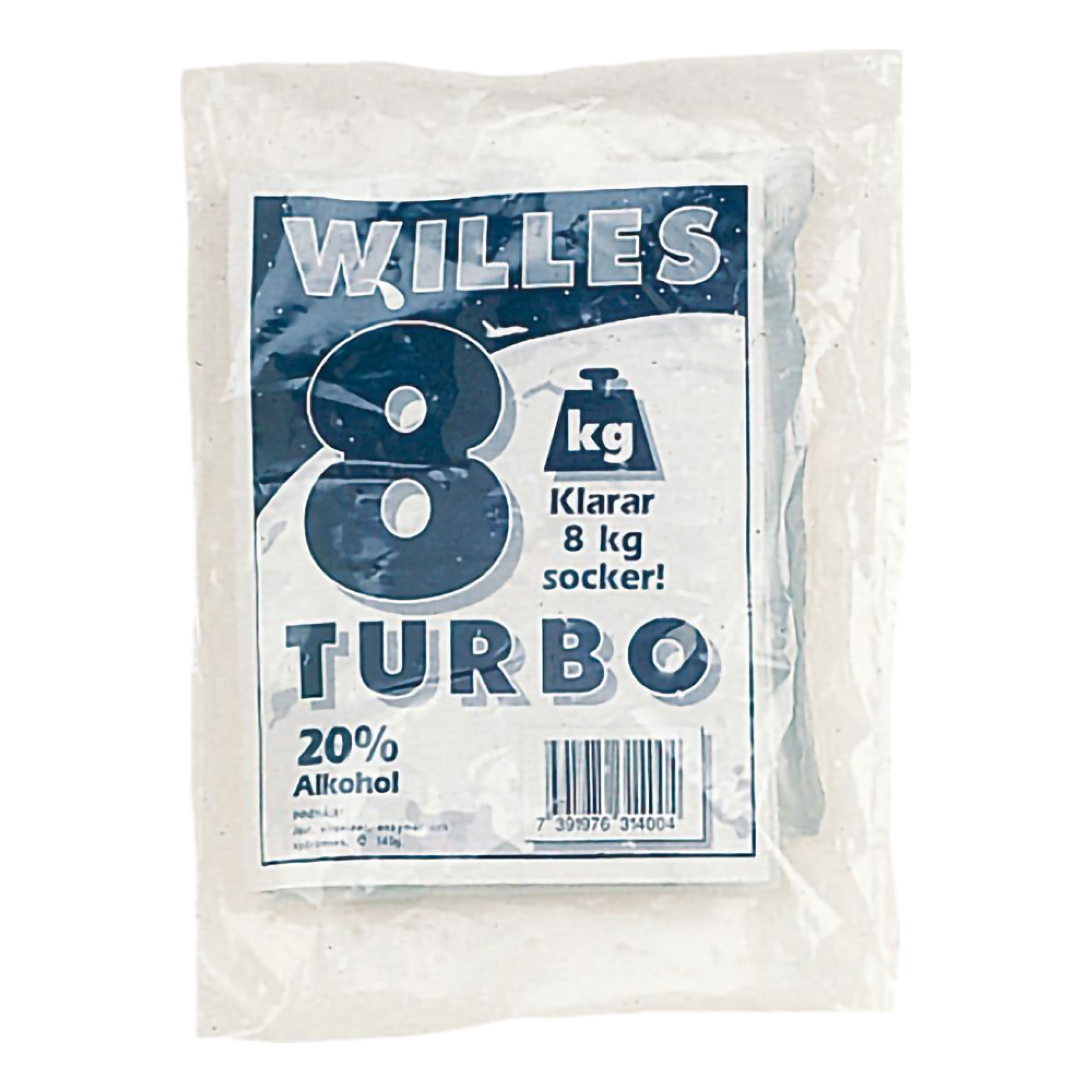 Willes Turbojäst är en 3-komponents turbojäst som jäser ut cirka 8 kg socker på 10 dagar, beroende på temperatur.