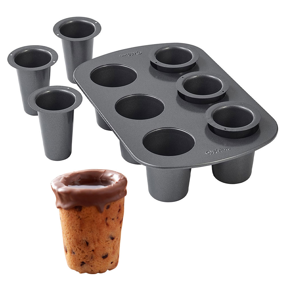 Wilton Cookie Shot Glass Pan är en bakform som ger dig möjligheter att baka riktigt coola shotglas av kakor som du penslar ett lager smält choklad inuti och till sist fyller med din absoluta favorit drink, ett riktigt roligt inslag på festen! Wilton bakform för ätbara shotglas kan så klart även användas till desserter istället för drinkar, fyll de med glass till kalas till exempel.