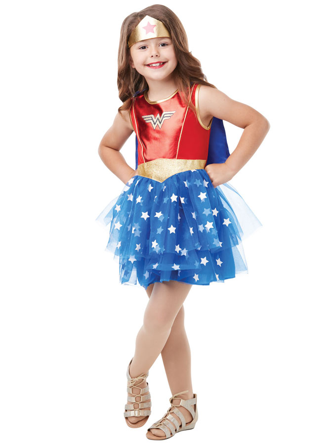 Dressa om till DC Comics superhjälte-tjej Wonder Woman och gör en häftig entré på superhjälte maskeraden med den här snygga dräkten i rött, blått och skimrigt guld! Bli den sötaste hjältinnan någonsin med denna riktigt fina Wonder Woman maskeraddräkt med snygg klänning med matchande hårband. En fantastisk Wonder Woman utklädnad för alla barn som vill förverkliga sina superhjälte-drömmar.