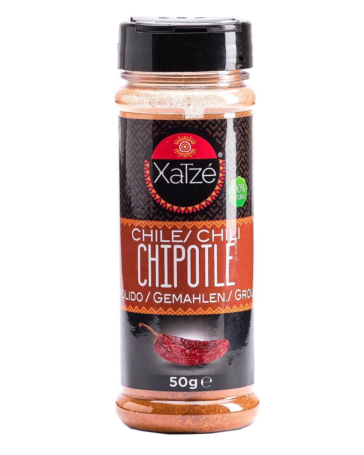 Denna härliga chipotle chilikrydda från det mexikanska varumärket Xatzé sätter en fantastisk och rökig smak på din mat. Chipotle chili är en blandning av röda jalapeño och serrano chili från den sista plockningen av plantorna, som torkas och röks. Kryddan har ganska mycket hetta men också en rökig smak och en något blygsam söt smak.