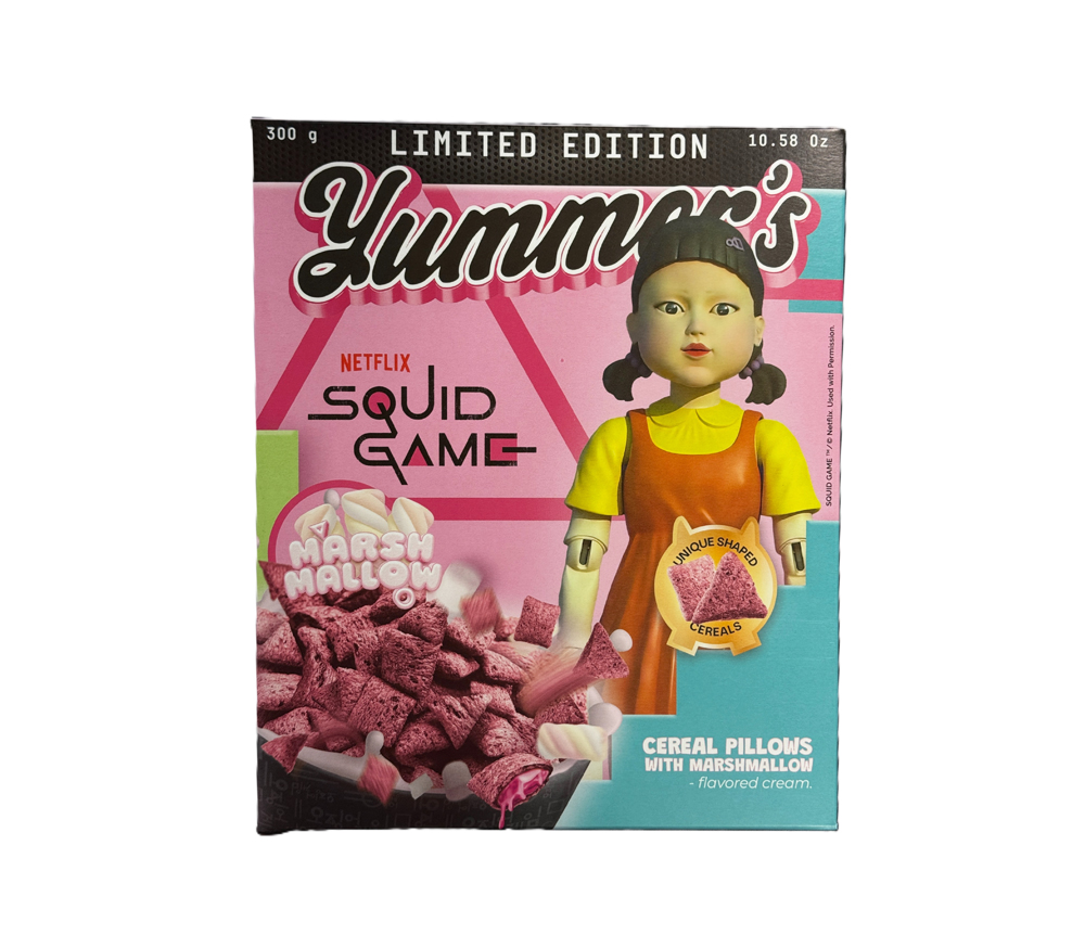 Squid Game Marshmallow Cereal är en spännande frukostblandning inspirerad av den populära Netflix-serien. Dessa mjuka vetekuddar med marshmallow-fyllning ger en söt och tillfredsställande frukostupplevelse med tydlig koppling till den ikoniska serien. Flingorna behåller sin konsistens i mjölk och varje munsbit ger en perfekt kombination av flingor och marshmallow-sötma. En unik och underhållande frukost för fans som vill börja dagen med en nypa Squid Game-känsla.