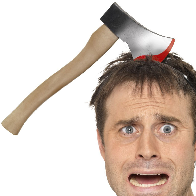 Gör din Halloween-outfit så mycket mer verklighetstrogen med en rejäl yxa i huvudet.