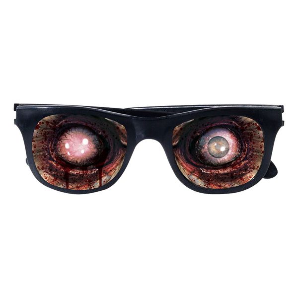 Zombie Glasögon har svarta bågar med tonade glas av läskiga, blodiga zombieögon. En helgrym accessoar till din zombiedräkt, och ett perfekt alternativ om du inte vill ha crazylinser!