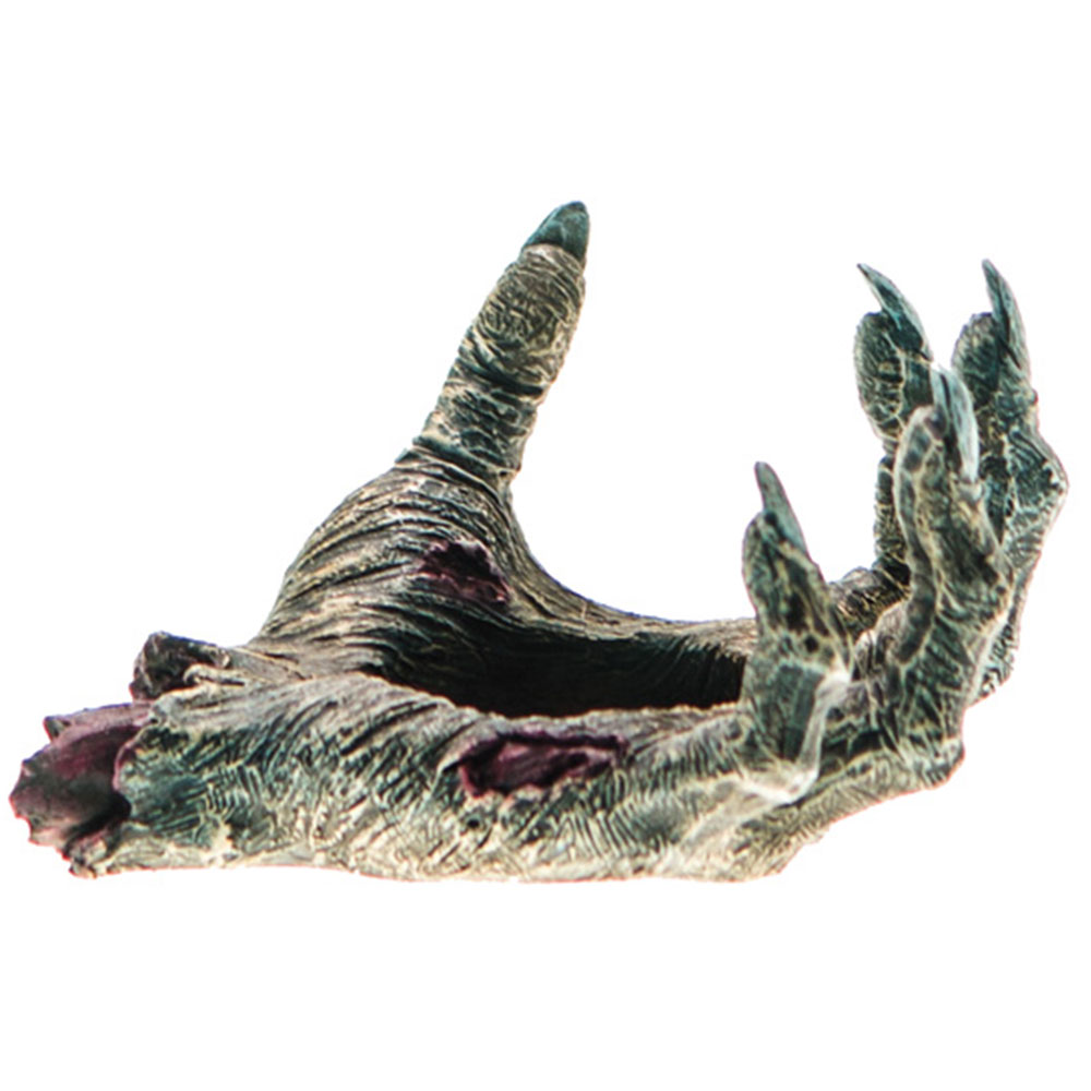Zombiehand Ljushållare omfattar en ljushållare i form av en blodig zombiehand i grå nyanser.